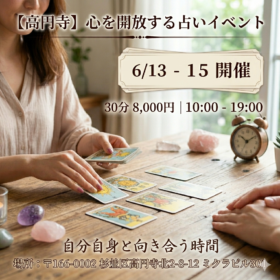 どのような内容の占い・ご相談でも、対面・電話は30分単位の料金を一律で設定しております。お話をする中で他に聞いてみたいことが出てきた場合は、お気軽にお申し付けください。LINEやメールなど、文字でのやりとりをご希望の方はご相談ください。