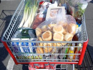 ねぎ、ニンジン、じゃがいも、とまとなど野菜を中心に牛豚ミンチにエビなど沢山の食材を買いました😆